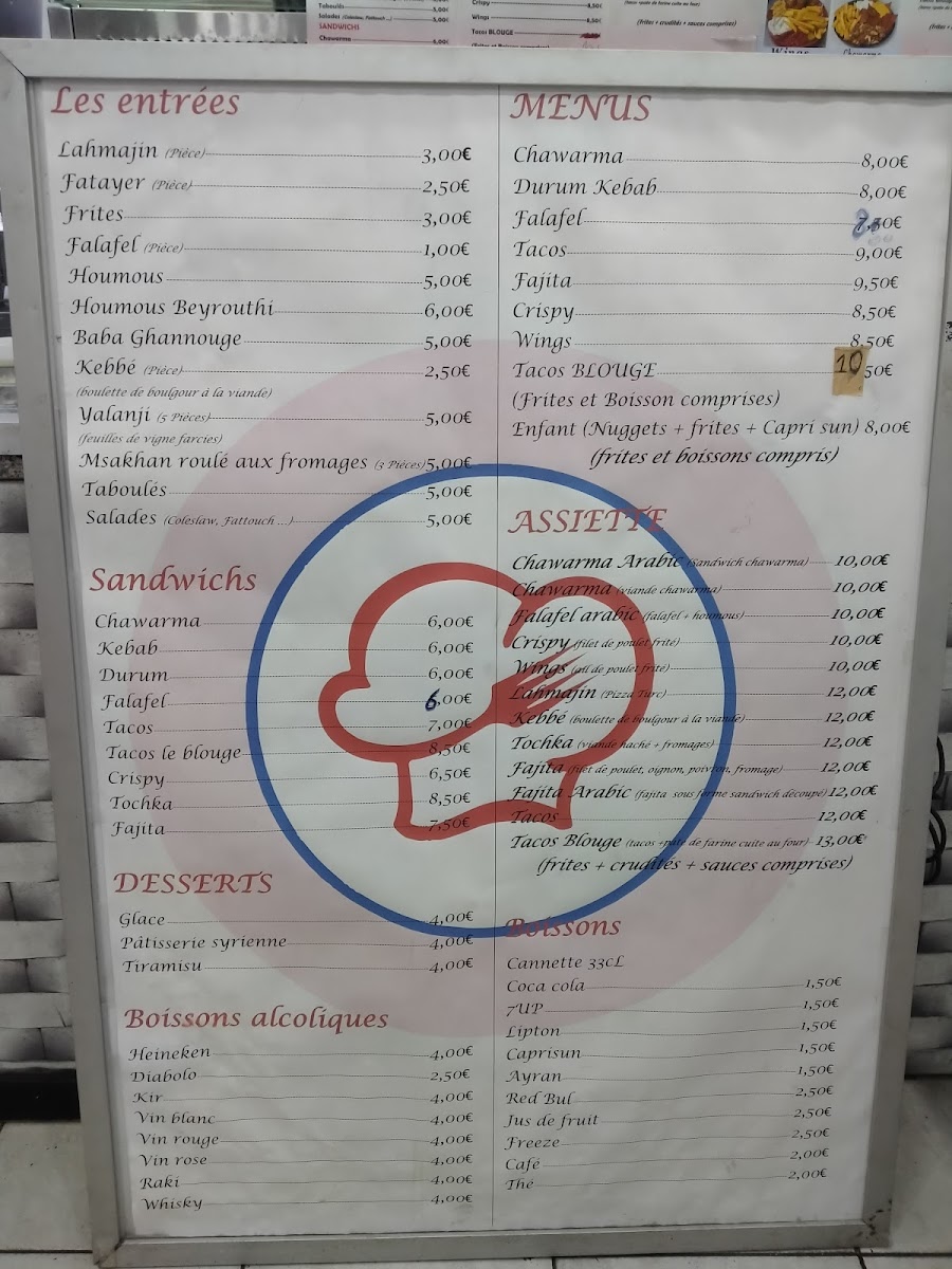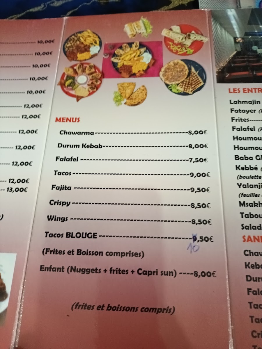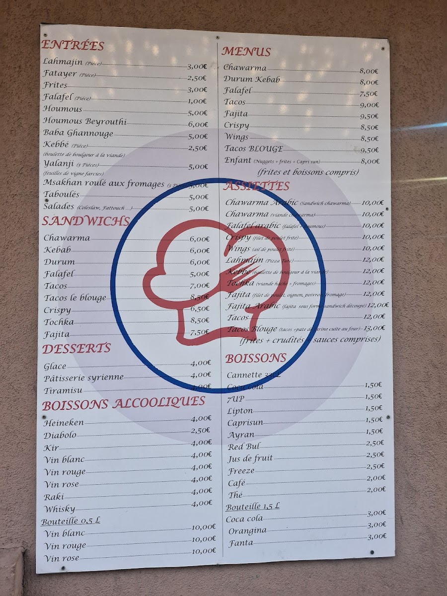 For those with a petite appetite, Le Blouge also offers delightful bites like lahmadjin for €3.00 and fatayer for just €2.50, ideal for sharing or enjoying as starters. The generous portions and reasonable prices ensure that every visitor finds something to savor.